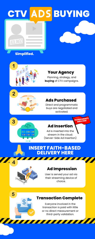 Perhaps never have we seen an advertising marketplace spring up with so little measurability. Yet there is a line of brands down the block desperate to spend. Consequently, investing in CTV is a faith-based exercise where we trust the marketplace to deliver on the promise without verifiable proof of delivery or quality.